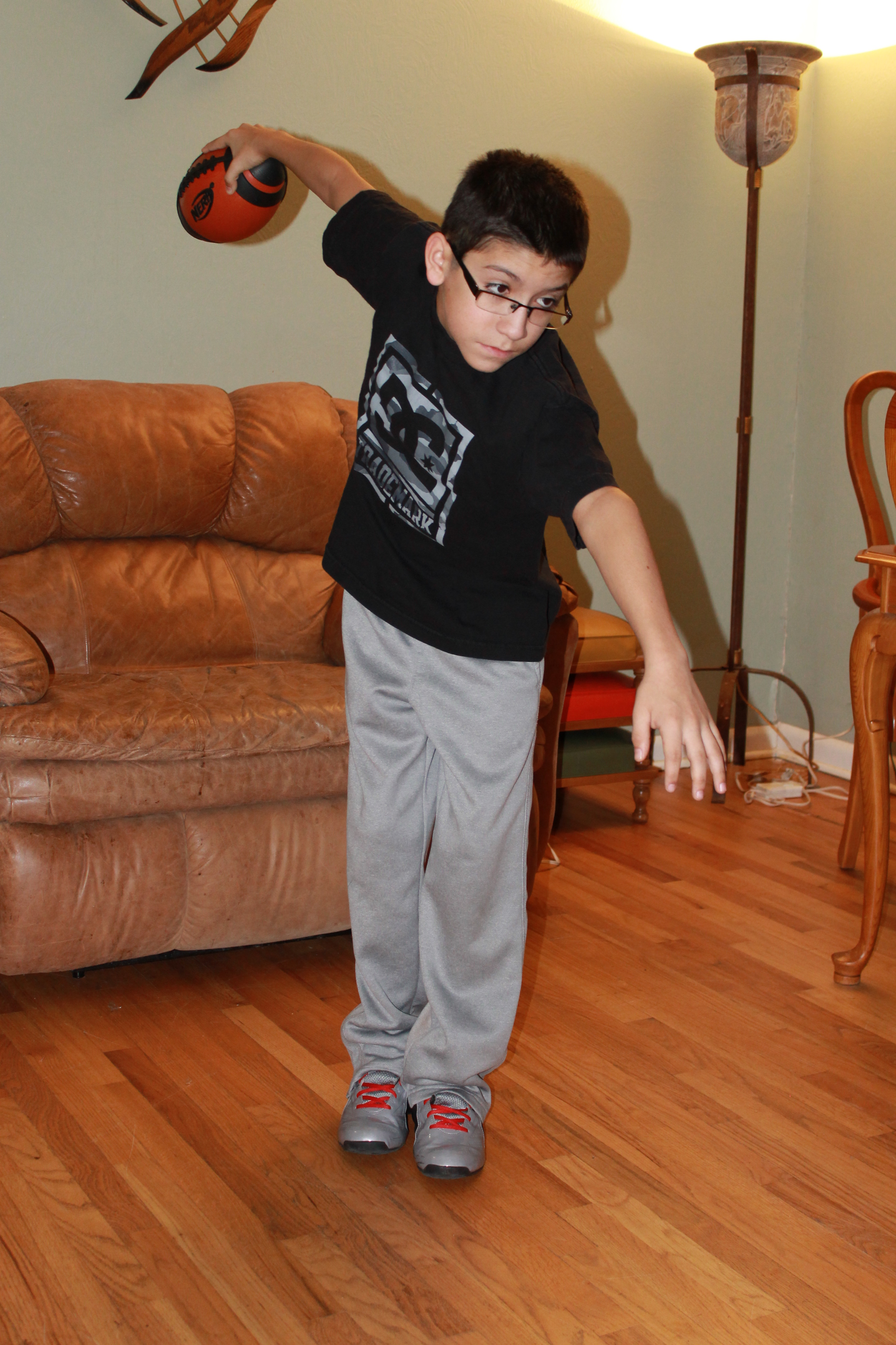 We will be using both hand balls full of sand with 3 different weights (2lb,3lb, and 5lb), Nerf footballs and swing training tools (Eileen's bowling buddy) to be used in performing the drill.