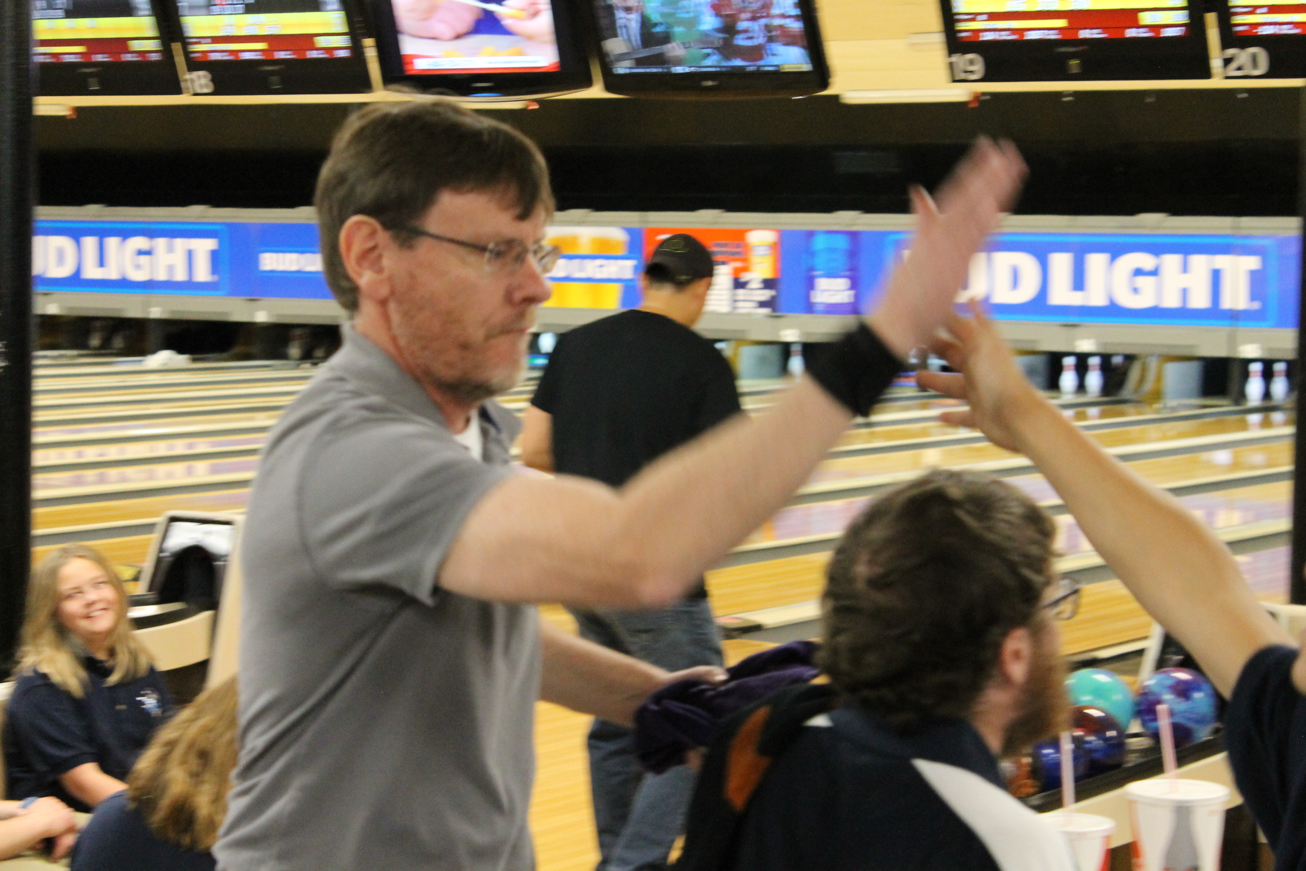 The lanes are turned on for 10 minutes of practice, then the three games are bowled for score. The first 5 minutes of practice time will be performing the one step drill. The second 5 minutes will be the full approach.